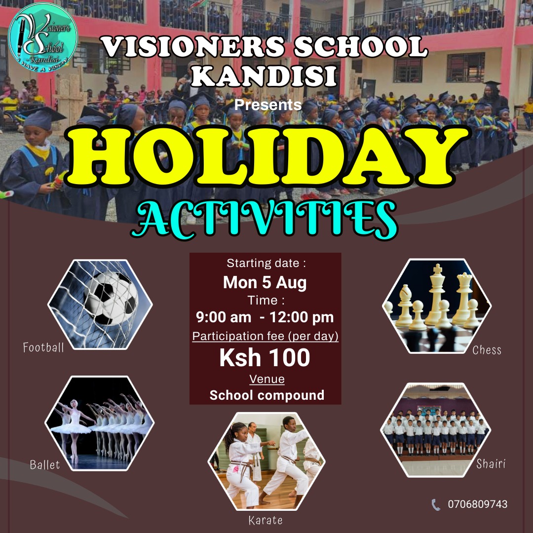 Visioners School Kandisi Kandisi, 5th Avenue Rd, Ongata RongaiWe shall officially close school on October 23rd, 2024. End-of-year results for all grades except grade six will be picked on FRIDAY,1st November 2024 from …